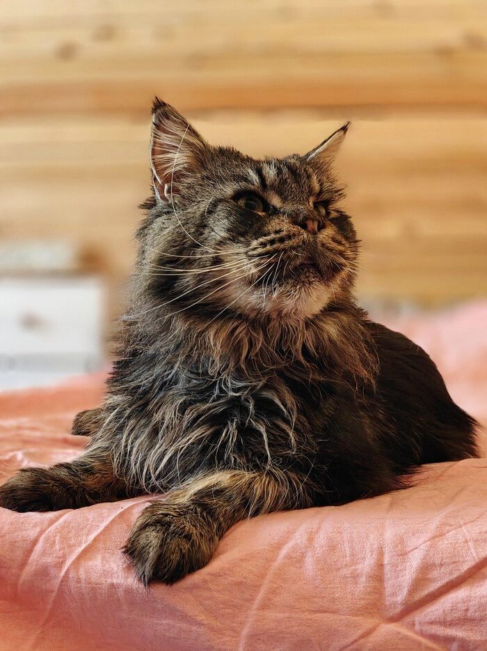 Слышит плохо. Спит почти все время, особенно после того, как плотно поест. Тормозит тоже очень сильно. Разбудить его сложно. От меня практически перестал убегать - ему просто лень. Сустав не болят. Выглядит как черный пыльный мешок.