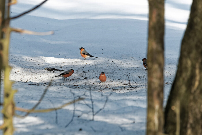 Как всегда, в начале марта на кормушки прилетают даже снегири с пищухами. В Щёлково нагрянули +12 и солнце. В лесу все чирикают и поют.