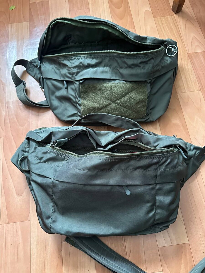Будет использована для экстренной укладки. То есть, чтобы прям, случай чего, схватил и выбежал (не дай Бог!). По ее укладке расскажу отдельно - чего уж он туда положит - я не знаю. Короче - будет полная информация. Внутренне, она ничем не отличается, от моей. Рекомендую, все-же перейти по первой ссылке, кто не видел. Внешне тоже, кроме отсутствия "липучки на фасаде. Вот сравнение сумок: