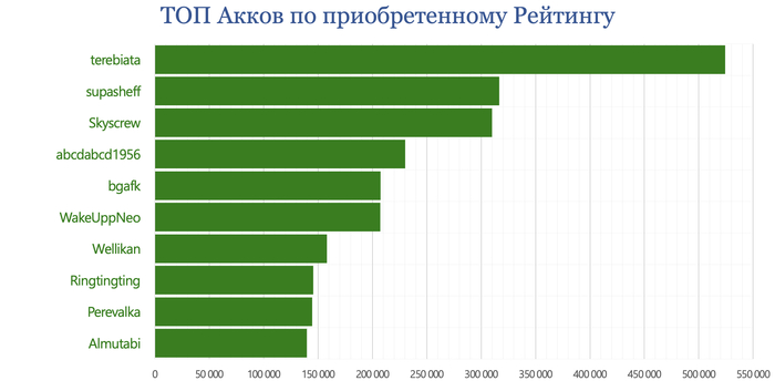 На конец месяца удалили свои аккаунты и не вернулись 1 632 пользователей (в прошлом месяце - 1 727). Восстановили аккаунты 326 (в прошлом месяце - 356). Переименовали свои акки 152 (в прошлом - 191).