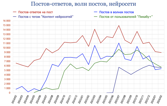 Постов-ответов на пост написано 10 941 (10,8%, на 20% меньше к предыдущему месяцу).
