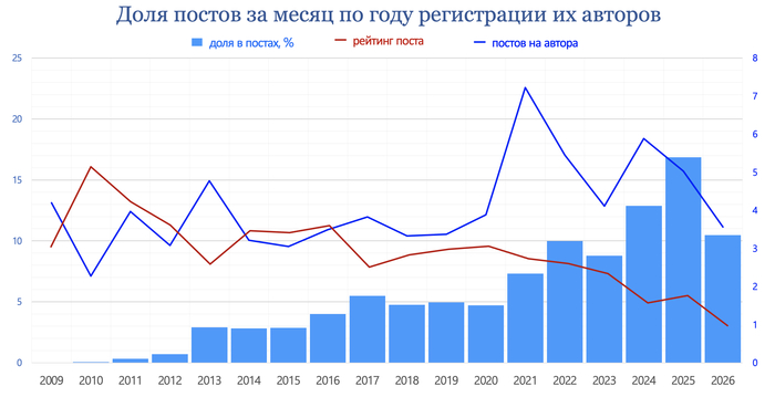 Причем падение рейтинга коснулось одинаково как и авторских постов, так и обычных.