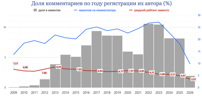 Таким образом, речь идет о 10-12 тысячах пикабушниках, определяющих почти 2/3 рейтинга всего контента.