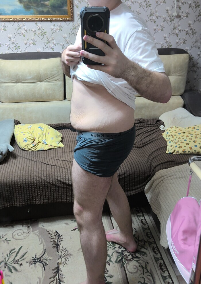Фото с разных перспектив. Пузень пока еще есть, плюс кожа висит, но еще 10-15кг скинуть и будет прям норм)