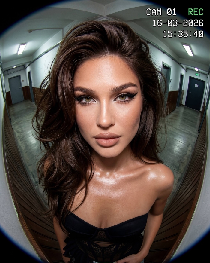 Съёмка выполнена на широкоугольный селфи-объектив 24-28 мм, присутствует лёгкое искажение по краям кадра, характерное для селфи.