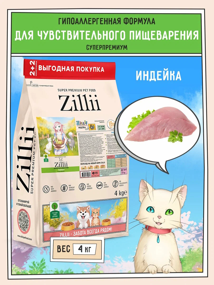 1. Сухой корм ZILLII Sensitive Digestion Cat с индейкой