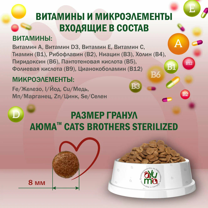 8. Сухой корм AYUMA Premium для стерилизованных кошек