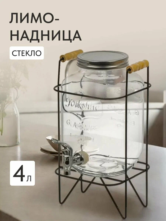 Это ваша стильная и вместительная лимонадница на металлической подставке, идеально подходящая для семейных застолий и вечеринок. Объём 4 литра оптимален для большой семьи или компании гостей.