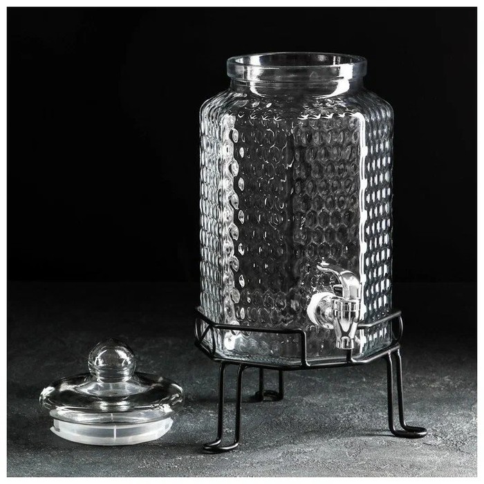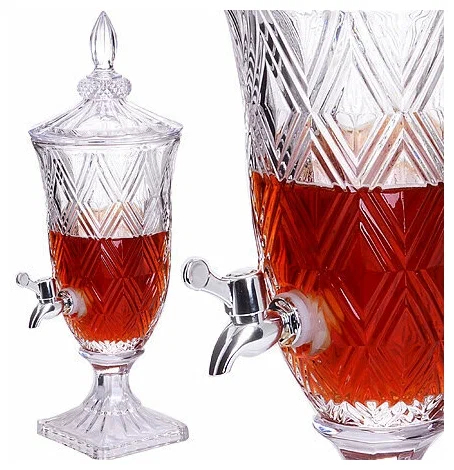 Это ваш классический и элегантный стеклянный диспенсер на подставке, созданный для семейных застолий и вечеринок. Удобный краник легко поворачивается, а крышка плотно прилегает, сохраняя свежесть напитков. Идеально подходит для прохладного лимонада летом и тёплого пунша в прохладную погоду.