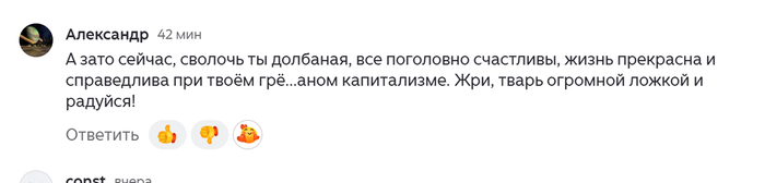 А дальше в комментарии ещё одно шедевральное высказывание. Прямо вот маркер такой.