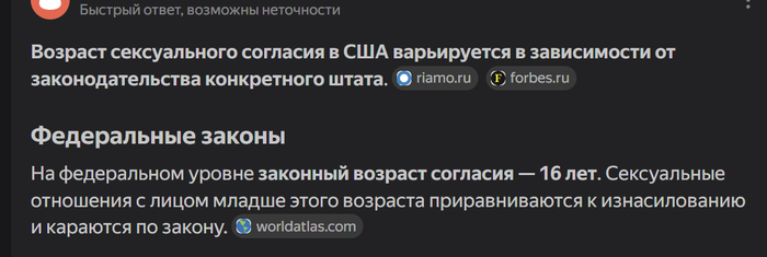 Но я тебе напомню что, например, возраст сексуального согласия в РФ 16 (Шестнадцать!) лет. А в случае если второй половой партнёр несовершеннолетний - то вообще 14 (ЧЕТЫРНАДЦАТЬ) лет.