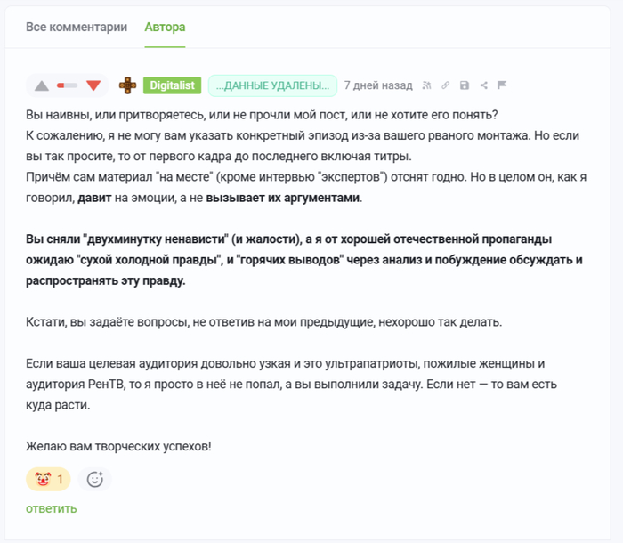 Ответ Digitalist в «ФИЛЬМ МЕСТО РУССКИХ. Трейлер...»