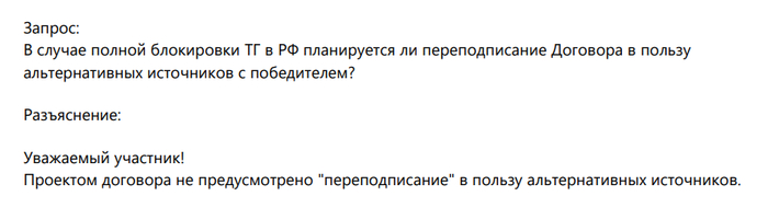Дальше должно быть распоряжение правительства о расторжении договоров в которых присутствует упоминание telegram.