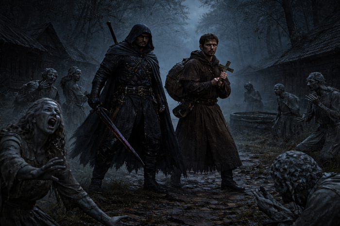 Они вышли на дорогу, ведущую к городу. Впереди, за поворотом, уже угадывались огни Чернограда — редкие, тусклые, но такие живые после мертвой деревни.
