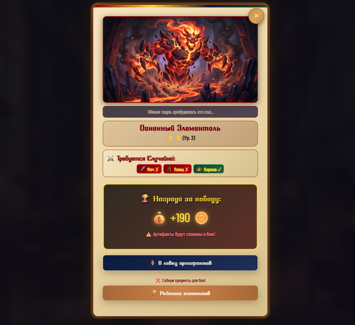 Снаружи это выглядит как RPG-мир: карточки, магазин, боссы, зал славы, статистика, боёвка.