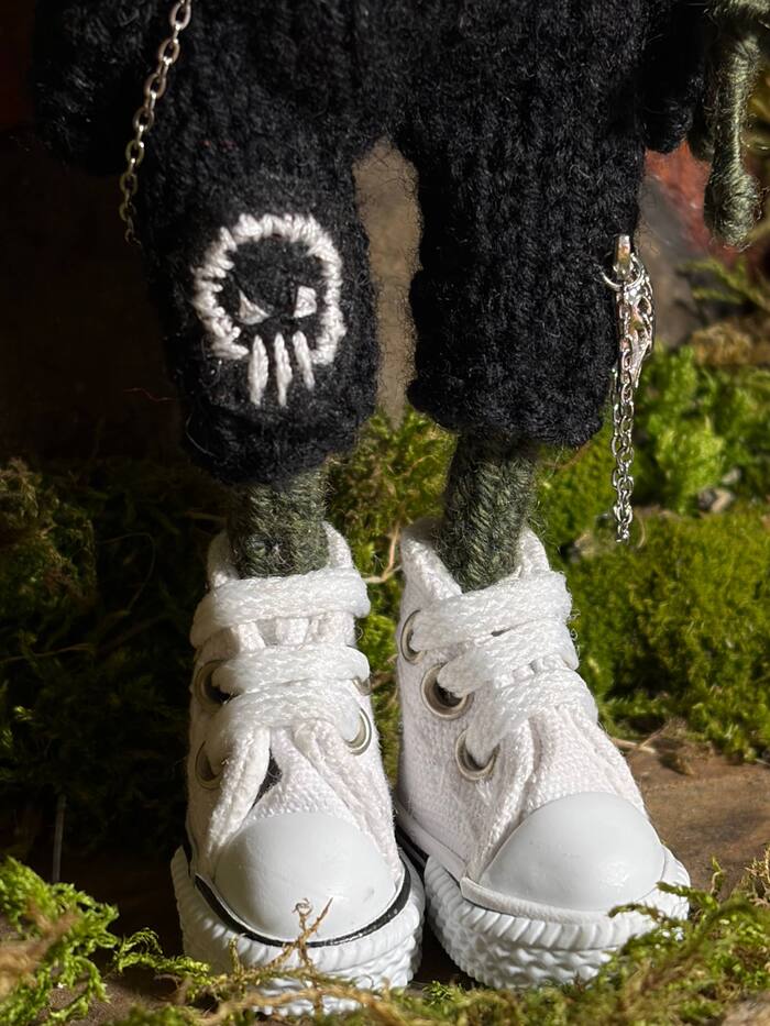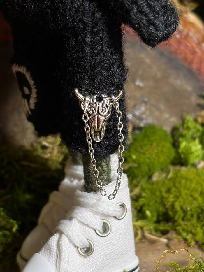 Квака из мериносовой пряжи, верх платья связан, а низ сшит из сетки. Держится на стальной проволоке. Цепочка и кулон из стали. Такого рода платье вообще шила впервые, ни разу не совмещала вязание + шитье.
