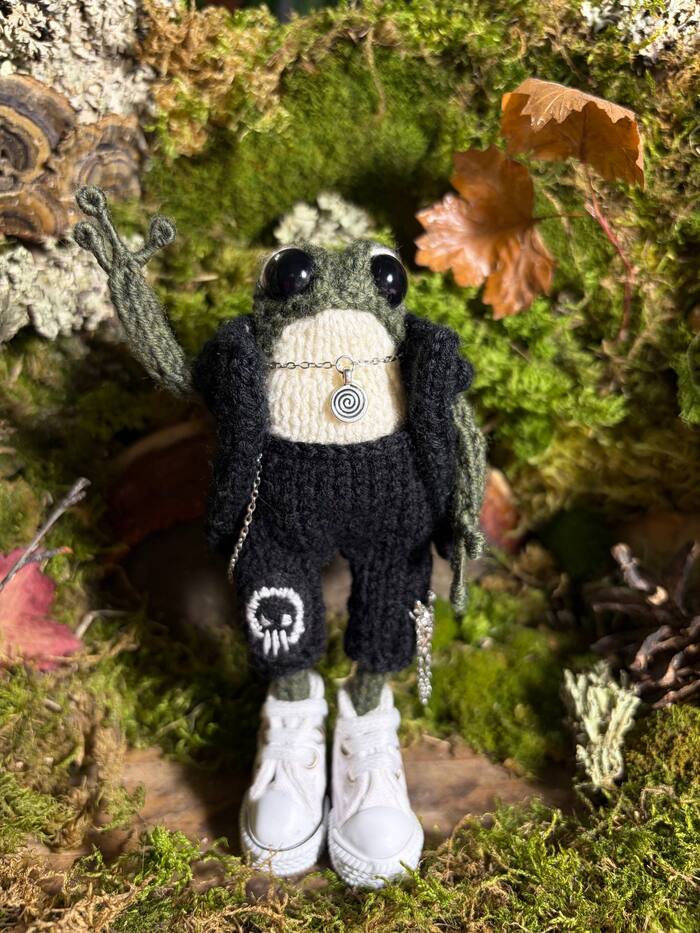 Я уже более года вяжу лягух, и вот только пару месяцев назад я нашла все материалы, подходящие мне для работы. Я перепробовала кучу пряжи, разную проволоку и глаза.