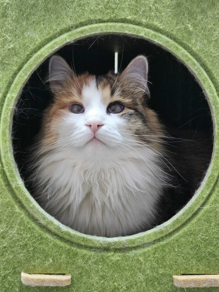 Лиса — роскошная кошка. В ней всё ровно и правильно: она игрива, но не навязчива, ласкова, но уважает личные границы. В нашем чёрно-белом царстве Лиса сразу выделяется — ярким, пушистым окрасом, будто солнечным пятном среди будней.