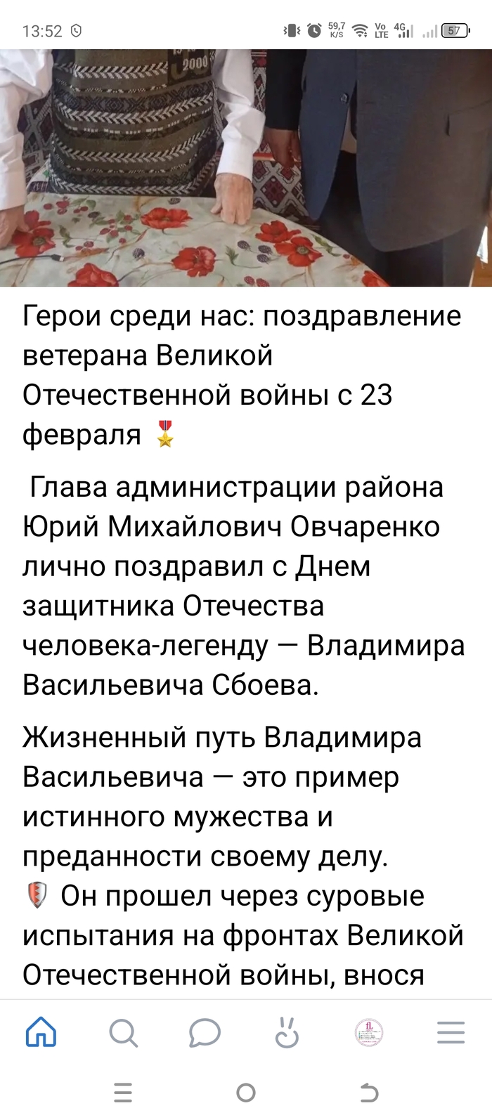 Поздравление ветерана с 23 февраля