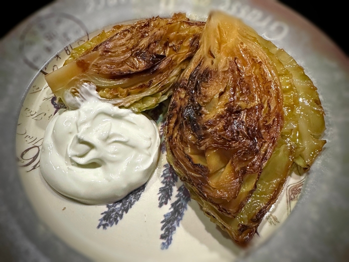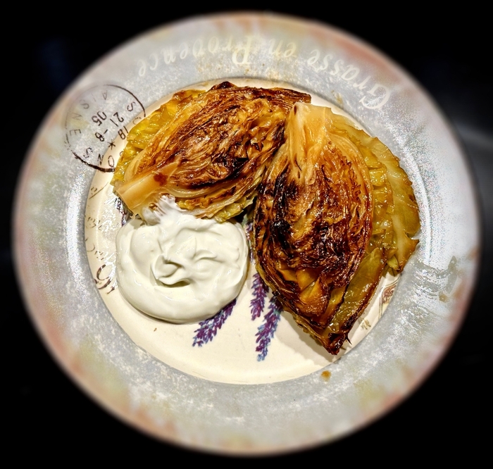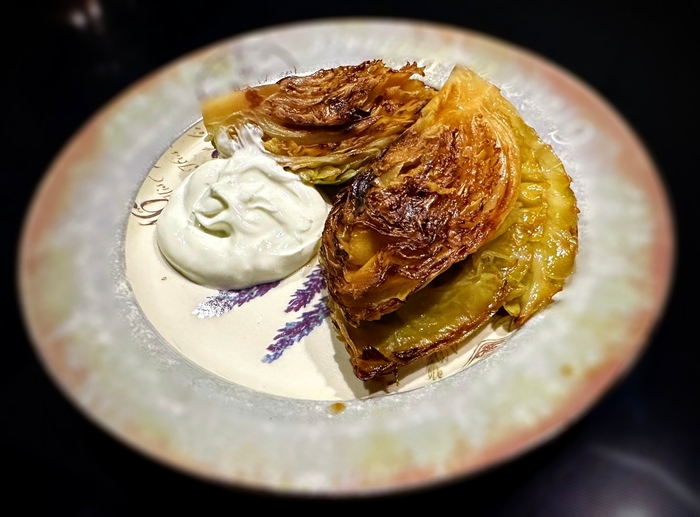А можно и вовсе без соуса. Но поверьте, очень вкусно. Во вкусе, наряду с капустной терпкостью присутствует не очень яркая сладковатость, присущая запеченным овощам.