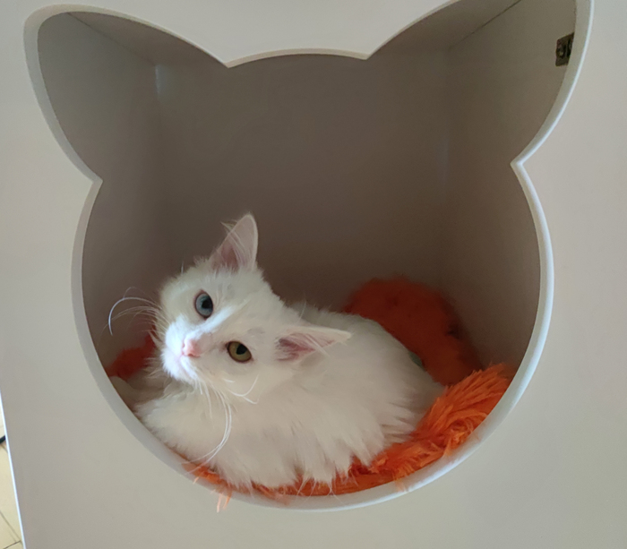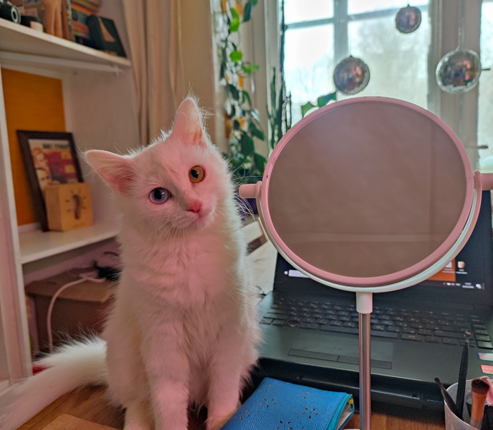 Резеда как-то резко выросла, вытянулась, утяжелилась. И одновременно стала совсем уж независимой. Редко приходит спать на коленочки, спать с нами уже не хочет, уходит. Но продолжает кокетничать.