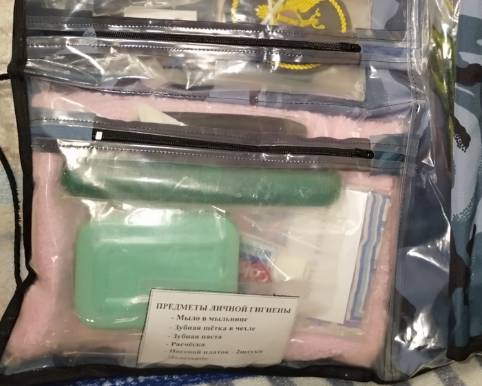 Первый карман, гигиенический набор.