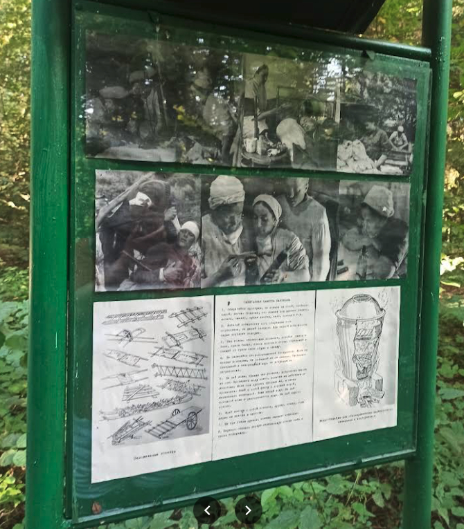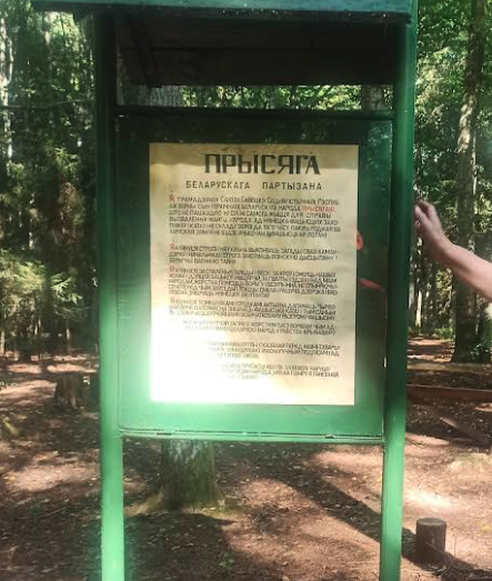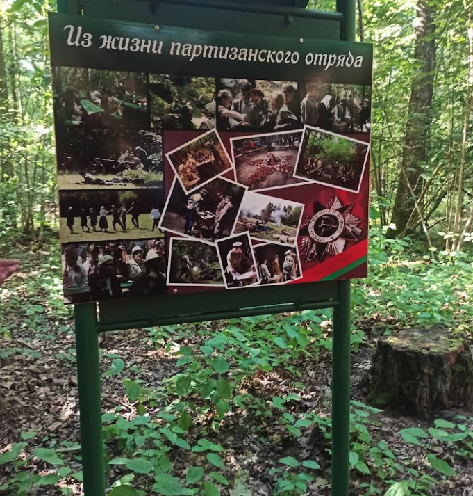 Он расположен на клочке земли, окруженном болотами и канавами. Это островок в лесной гуще, на который, как и в былые годы, ведет одна единственная кладка. Помимо областного партизанского соединения, здесь базировался обком ЛКСМБ, редакция и типография газеты «Заря», санчасть, «лесная школа».