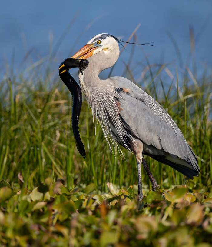 Излюбленный корм цапель – рыба. Но если ее мало, то они не откажутся от лягушек, ящериц, змей, жуков, мелких грызунов. Растительный корм их не интересует, но из животных они могут съесть любое, подходящее по размеру.