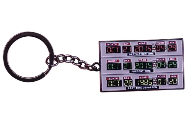 Брелок для ключей металлический в виде аппарата для выбора даты в машине времени. Ссылка на такой