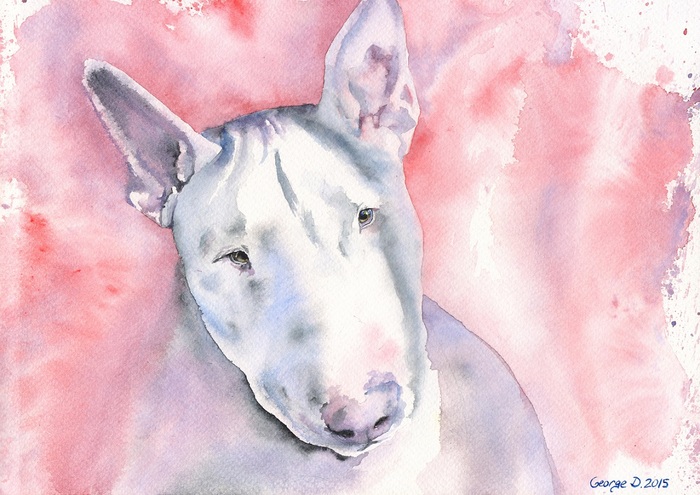 Портрет Бультерьера акварелью. Надеюсь вам понравится :)