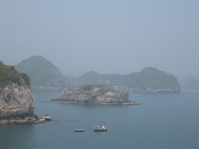 В общем я отправился исследовать бухту Халонг не по турстическому маршруту, а на лодке для местных, маршрут которой пролегает на 1-2 км ближе к острову CatBa, главному в архипелаге.