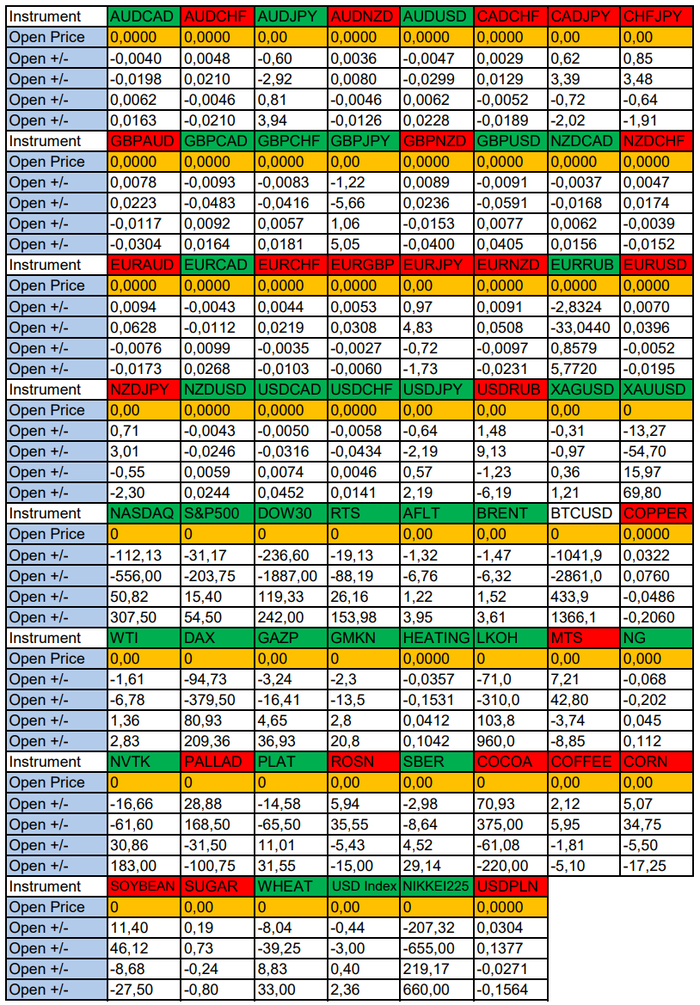 Весь перечень анализируемых активов указан ниже в общем количестве 62 инструмента. Здесь Вы найдете активы рынка Форекс, популярные активы Московской биржи, не менее популярные активы Чикагской биржи СМЕ и мажор криптовалютного сегмента - Биткоин, за которым следуют все альткоины.