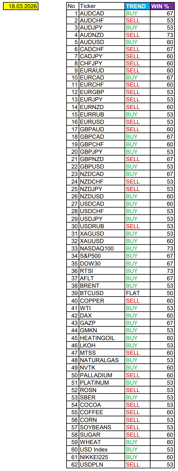 Сезонные тенденции и вероятности на среду 18.03.2026