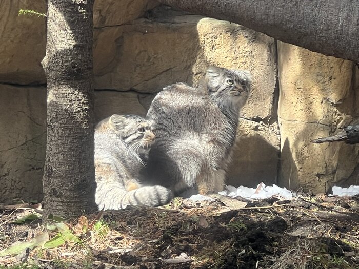 Манул Борис вдруг решил, что февраль это уже практически май. Обычно манулы – народ солидный, степенный. Сидит в своем вольере, смотрит на публику с видом человека, которого попросили объяснить теорию относительности дошкольникам. Неспешный, вдумчивый. Но тут, видимо, почувствовал весну носом! Излучает такой оптимизм, что, честное слово, хочется самому пойти и понюхать, где там эта весна прячется.