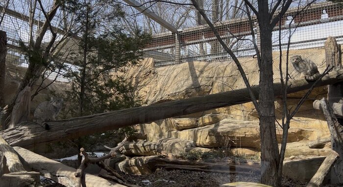 Зона с искусственными скалами располагается за стеклом. Стекло расположено под углом и спроектировано таким образом, чтобы уменьшить блики, поэтому вы можете видеть происходящее внутри, не беспокоясь об отражениях.