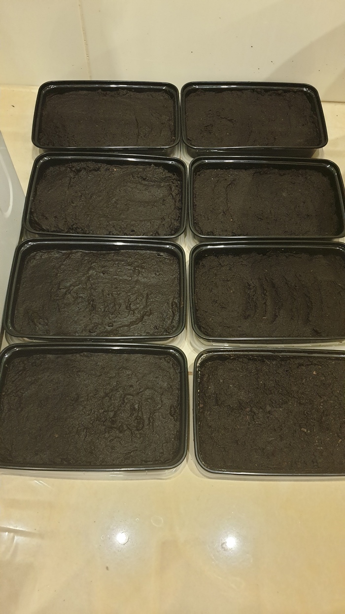 Таааак, что сажать есть. Теперь вопрос куда? - Ну конечно в землицу русскую! Прикупил мешочек универсального грунта. Как позже оказалось нужно было брать сразу шесть! В сезон не так уж и просто оказывается прикупить даже земли. За деньги купить земли, Карл! - Проблема. Пролил кипятком с марганцем, чтобы на всякий случай убить там возможную заразу и расфасовал по одноразовым пищевым контейнерам.