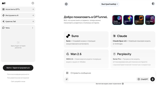 Для кого лучше всего: Идеальный выбор для всех, кто хочет надёжный бесплатный инструмент без VPN. Особенно хорош для задач, где важно глубокое понимание русского языка — написание статей, рефератов, деловой переписки.