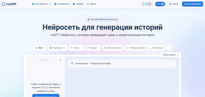 ✅ Доступность. Многие сервисы — включая ruGPT.io — предлагают генерацию бесплатно, прямо в браузере и без регистрации.