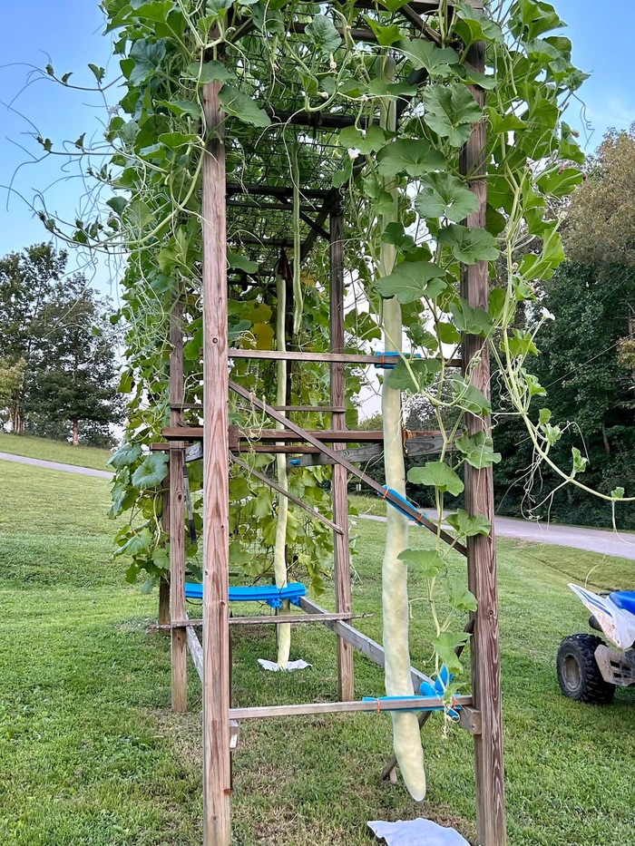 Это идеальный вариант если вы хотите выращивать гигантские тыквы, но у вас нет места на огромный куст и плод. Потому как такие тыквы выращивают на высоких шпалерах и это обязательно потому что гравитация делает эти тыквы такими длинными. Если тыква достигнет земли, она свернется.