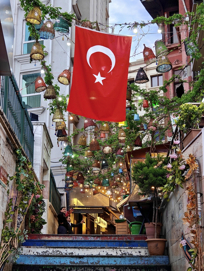 Вечером вернулись на Истикляль и нашли кумпир — гигантскую печеную картошку с начинкой на любой вкус: от оливье до грибов и острых сосисок. 450 лир (990 руб.), но оно того стоит! По сути пюре с салатами, но подача моё почтение!