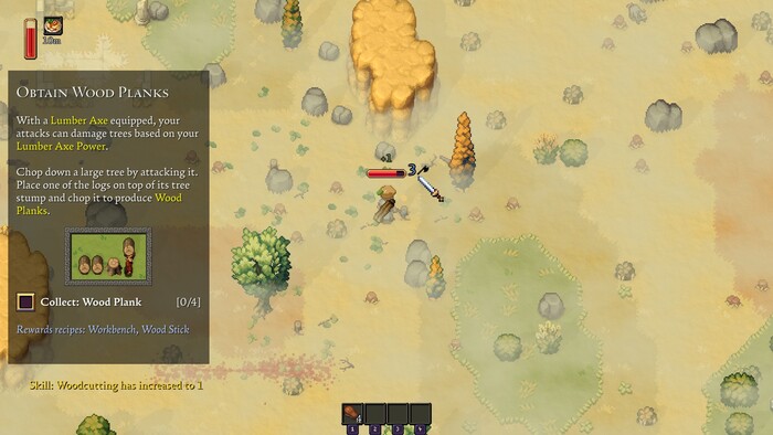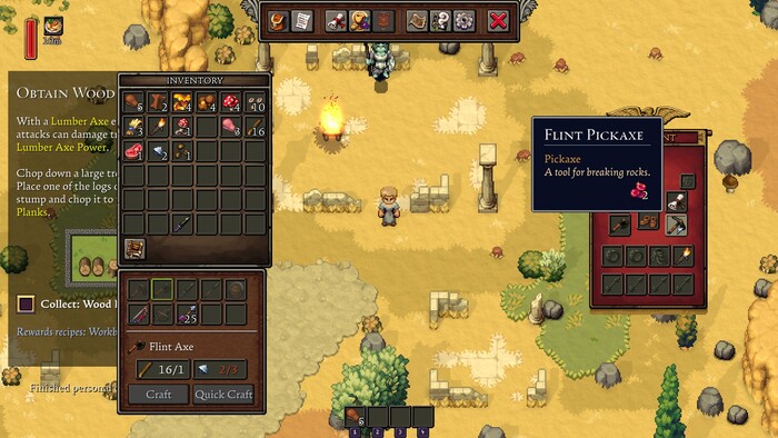 Вскоре нам откроется доступ к основным добывающим инструментам, которые позволят эффективнее рубить дерево и долбить камни.