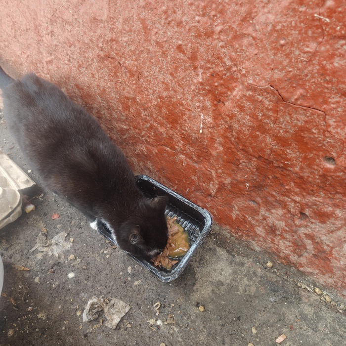 Карамелька вышла гулять, тоже наелась , напилась, довольно умывалась.