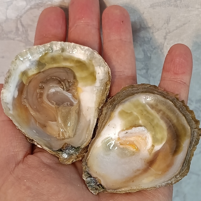 Ostrea edulis — вид двустворчатых моллюсков, известный как европейская плоская устрица или съедобная устрица. Отличается от привычных устриц, видовой принадлежностью, визуальной формой и соответственно вкусовыми качествами. Плоские створки, мускул смещен к центру, вкус йодистый, кисло-соленое послевкусие, как будто контакты батарейки облизнуть. Обычно плоские устрицы называют "Белон", на фото плоская устрица "La 1930", разные торговые названия. Такую обязательно нужно пробовать при случае, оставлю себе тут этих малышек.