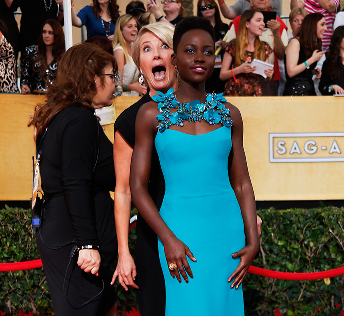 Эмма Томпсон решила потроллить Люпиту Неонго и влезла в кадр ее фотосессии: