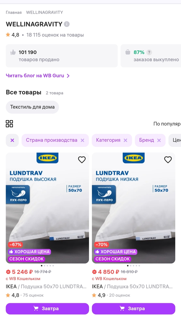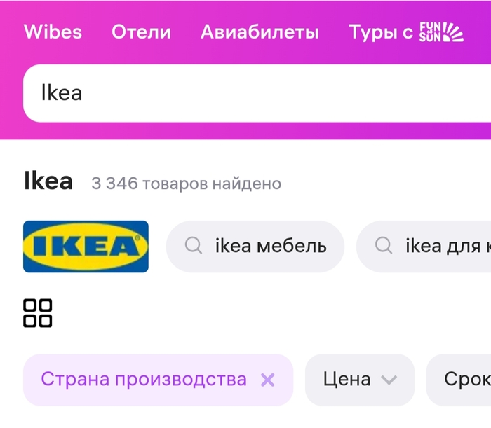 Таких товаров на Wildberries много, достаточно написать в поиске IKEA и выбрать в фильтре страну производства Россия. Мы нашли больше 3 тысяч товаров. Наверное в момент ухода Икеи из России многие запаслись на годы вперёд. Шутка