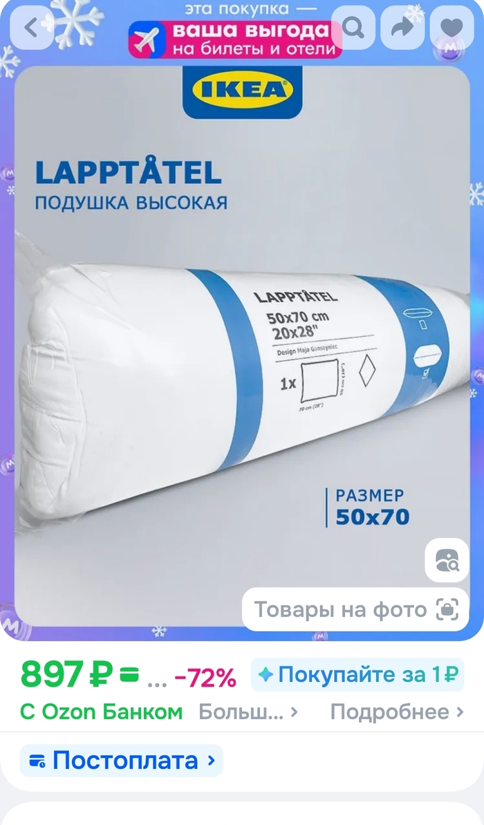 Подушка была икеевская и даривший сопроводил это фразой «Мало кто догадывается что Икея давно вернулась в Россию, просто продается на маркетплейсах. На WB её точно можно купить». Я удивилась, про параллельный импорт читала раньше, а о таком не слышала. Но поблагодарила, тут же открыла упаковку и в нос ударил резкий и неприятный запах. Даривший тоже был этому сюрпризу удивлен, мы стали изучать упаковку и обнаружили что подушка была произведена в ноябре 2022 года. И была действительно произведена в России, надпись "made in Russia" была на упаковке.