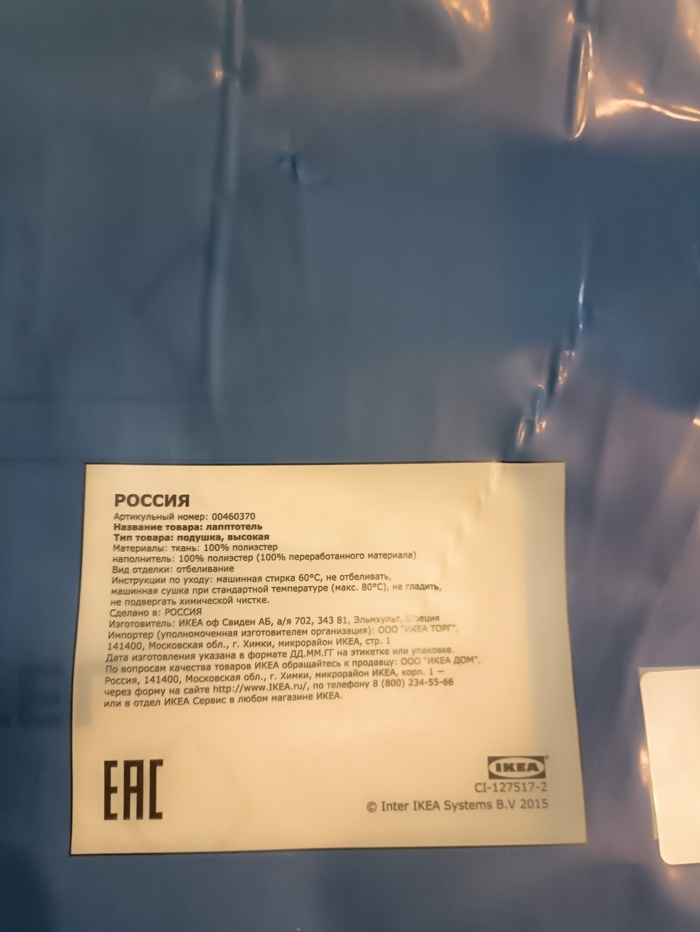 Я предположила что подушка пролежала сжатой и запаяной в пакет больше трёх лет, поэтому и запах и спросила можно ли вообще держать подушку столько времени в упаковке и какой у неё срок годности? Но позже поняла что была не права, и через день, и через два запах не уходил, а на третий день её уже нюхали бомжи на помойке. Даривший полез в телефон, но вместо ответа на мой вопрос нашёл другое, что Икея ушла из России в марте 2022 года. А подушка была произведена в ноябре и на её упаковке указано что по всем претензиям нужно обращаться в закрытые магазины Икеи и её закрытый офис. Нам показалось странным что Икея делала подушки для продажи в своих уже полгода закрытых магазинах и мы пошли на Wildberries, где эта подушка была куплена.