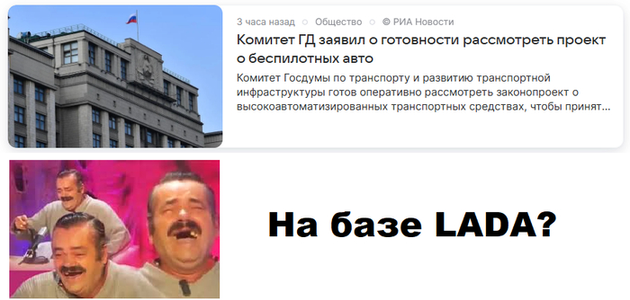 5 BesPodvoha У меня только один вопрос 18 дней назад Пруф: https://news.mail.ru/society/69972390/ Картинка с текстом Испанец хохотун Беспилотный автомобиль Грустный юмор 4 Ещё 0