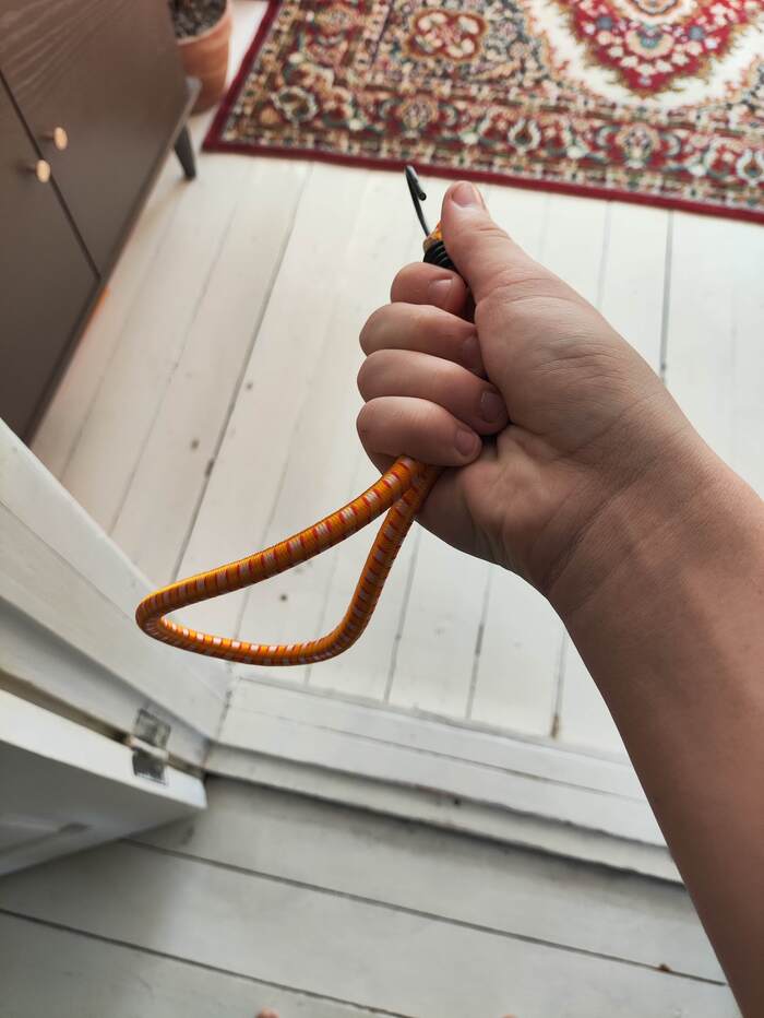 7. Теперь нам нужно что-то на что можно прицепить трубу к коробке,чтобы труба двигалась.Мне повезло у меня дома есть подобие карабинов