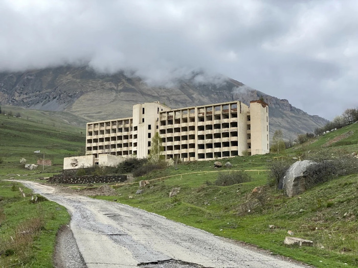 Поселок Кармадон - расположен в 35 км от Владикавказа на левом берегу реки Геналдон, на высоте 1520 метров у подножия Казбека, он известен своими горячими минеральными источниками, потрясающими горными пейзажами и печальной историей 2002 года(о ней позже). Название "Кармадон" с осетинского переводится как "тёплая вода" и это не случайное название. Именно здесь бьют целебные термальные источники, благодаря которым посёлок с 1962 года стал настоящим курортом, а минеральную воду "Кармадон" до сих пор продают по всей России.